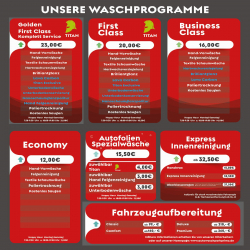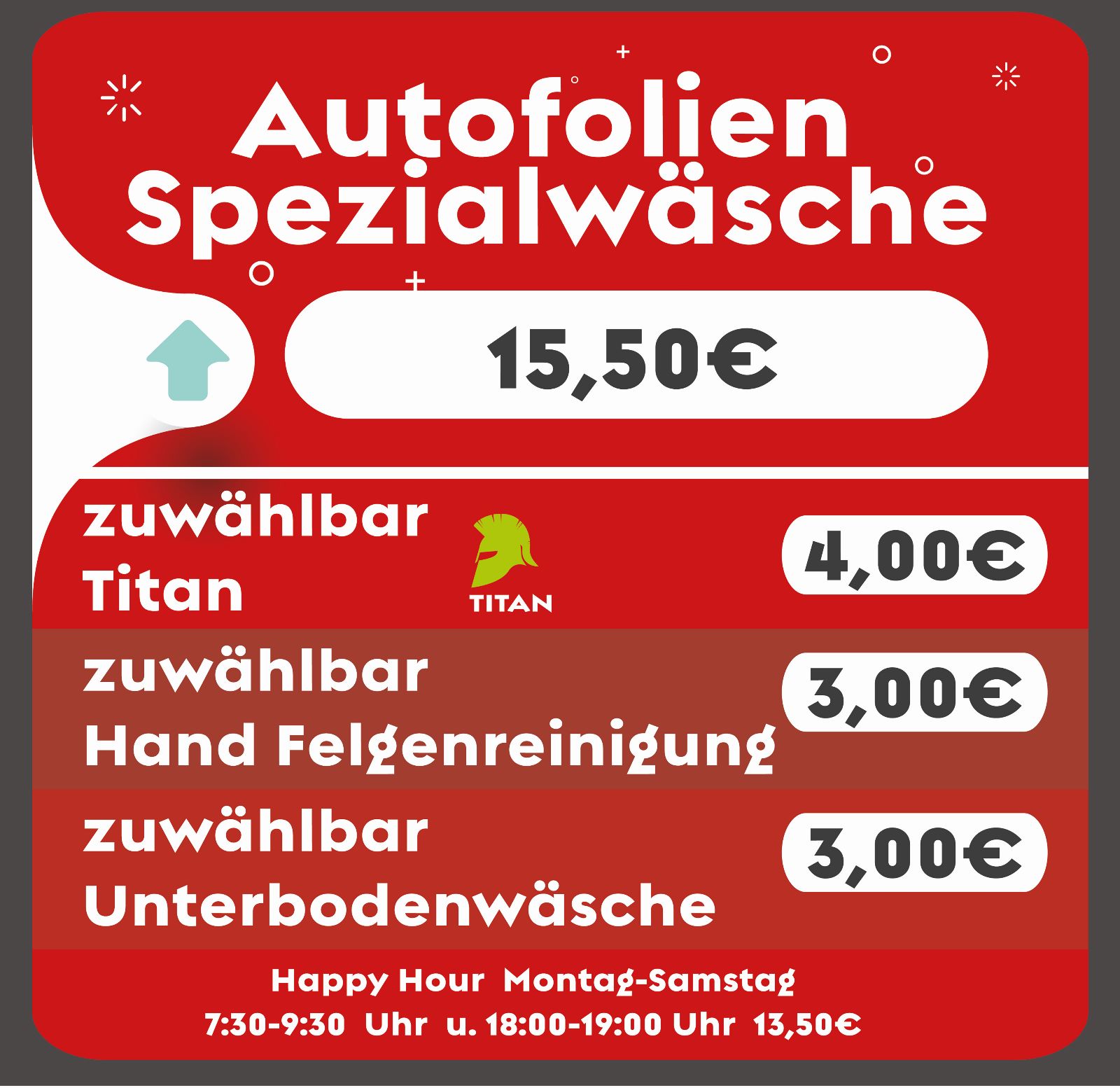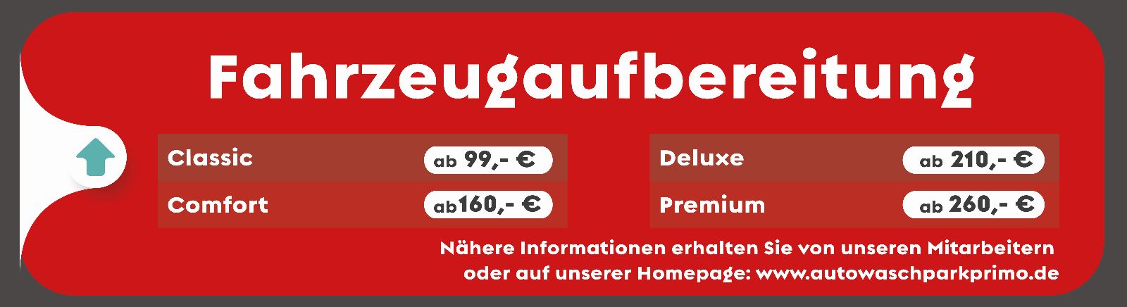 * Bitte beachten Sie, dass wir bei stark verschmutzten Fahrzeugen einen Aufpreis ab 10,00€ berechnen. Stark verschmutzte Fahrzeuge mit Tierhaaren zählen ab sofort als Fahrzeug-Aufbereitung und werden nur noch mit festen Terminen gereinigt!