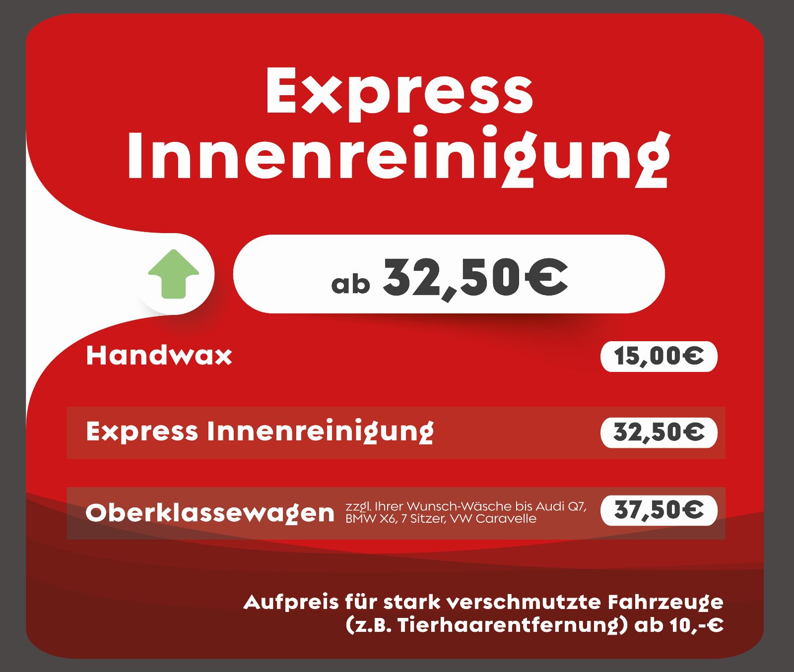Annahmeschluss Express-Innenreinigung: Täglich 17:00 Uhr